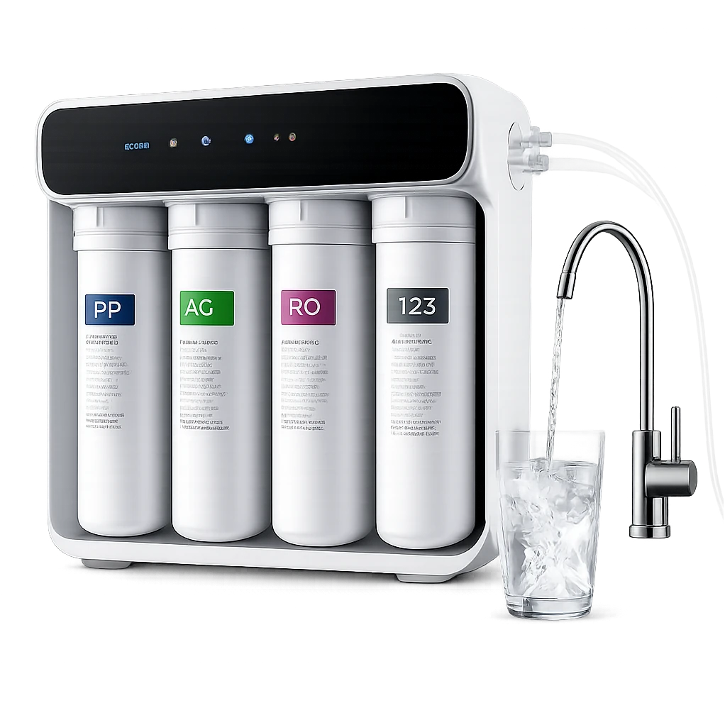 Bbagua EUR-50 Equipo de Osmosis Inversa de 5 Etapas para uso doméstico. Incluye filtro, membrana y postfiltro. Obtenga agua de mineralización débil y con un ultra bajo rechazo. .