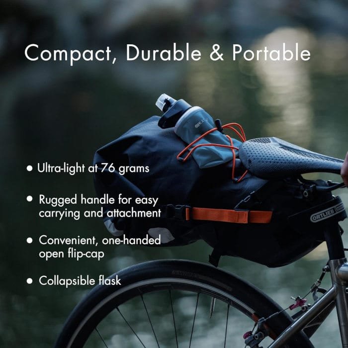 - Material: Fabricado en TPU resistente, la botella es flexible y se puede enrollar – compacta para cualquier equipaje y aventura.